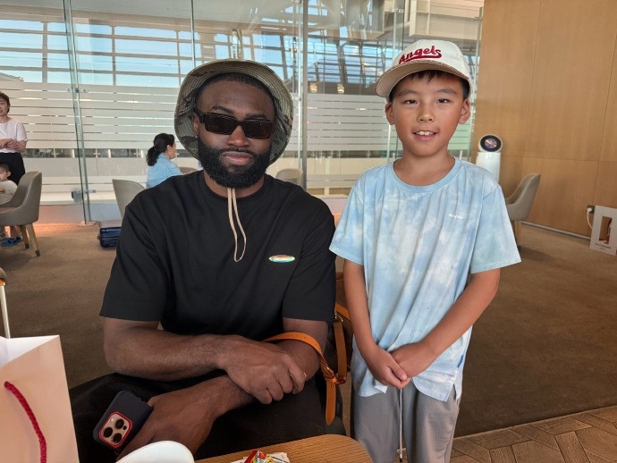 8月12日讯 解说员杨毅社媒晒图,他在首尔转机时在机场偶遇凯尔特人球星杰伦-布朗。